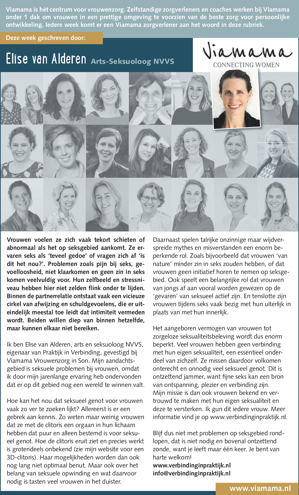 Ik ben Elise van Alderen, arts en seksuoloog NVVS, eigenaar van Praktijk in Verbinding.